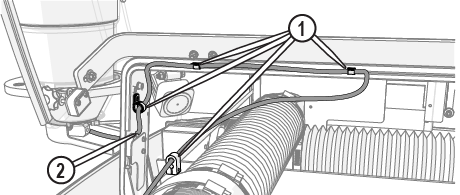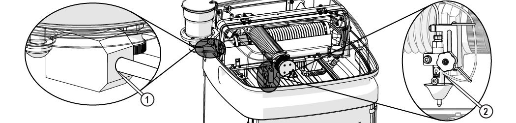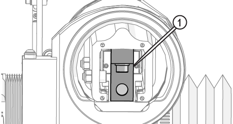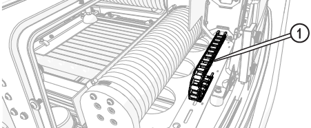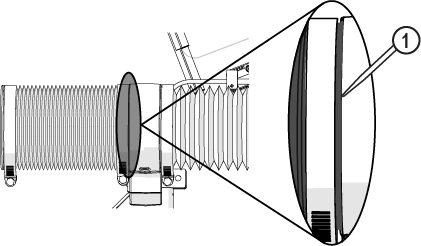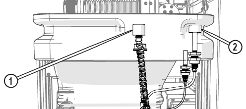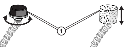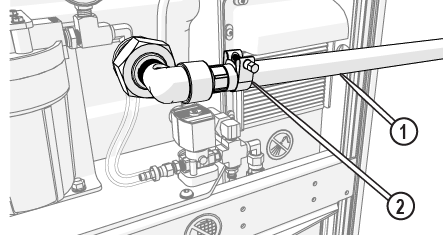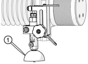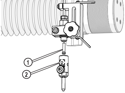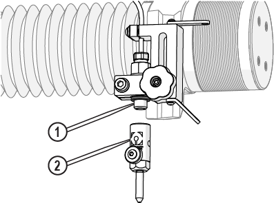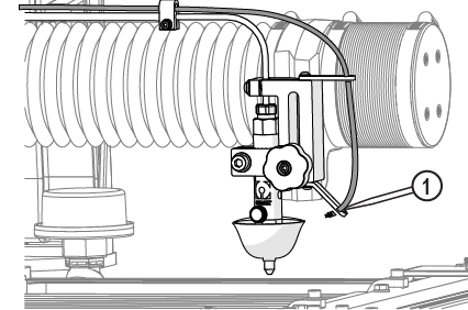 | e. | Observe the garnet abrasive tube [1] to make sure that the abrasive is flowing. |