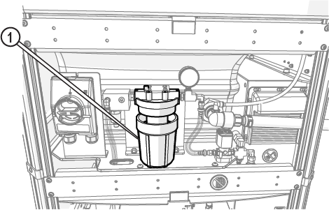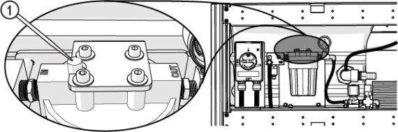 | 5. | Push the button [1] on the water filter to release the air. |