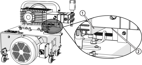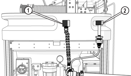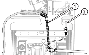 | 10. | Check the high-pressure plumbing for leaks at the nozzle [1], high-pressure fittings [2], and pump connection [3] during the test operation. |