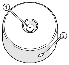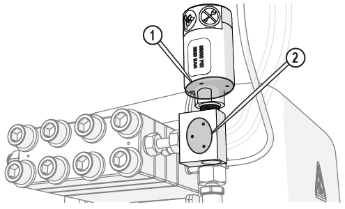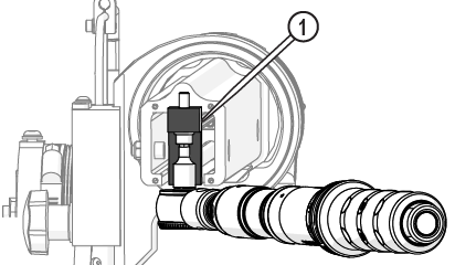 | 18. | Verify the orifice assembly [1] is installed in the nozzle body, adjust the orifice to make sure it is seated correctly in the chamber bore [2]. |