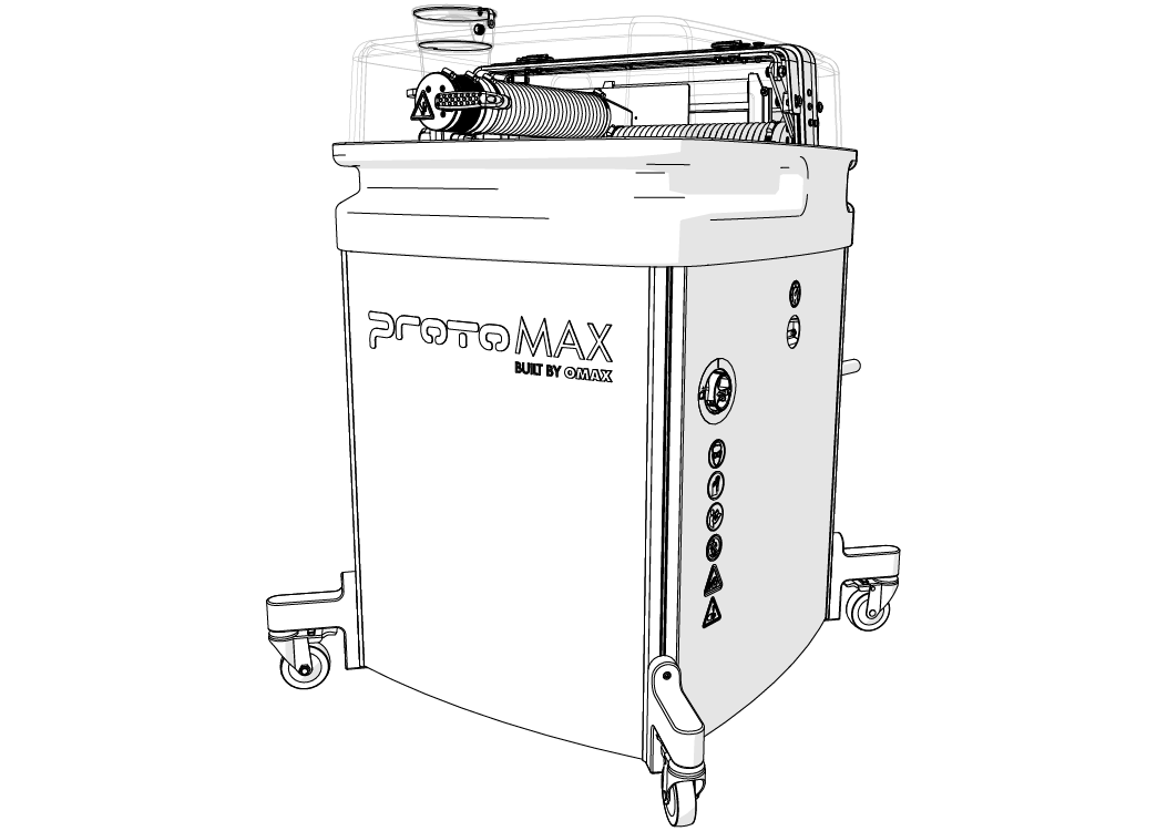 Keep a minimum of 16 in. (40 cm) away from pressurized equipment during operation. Do not try to tighten ultra-high-pressure (UHP) fittings while the system is under pressure. Do not touch or rub suspected high-pressure plumbing leaks. Rubbing or touching suspected high-pressure leaks can result in injury. If a leak is found, shut down the machine, then fix the leak before continuing. Never attempt to fix a leak while the ProtoMAX is running.