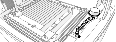 | b. | Position the nozzle in the center of the tank, between two slats. |