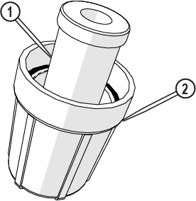 | 1. | Remove the nozzle body [2] and the nozzle filter [1] from the inlet body. Discard the nozzle filter. |