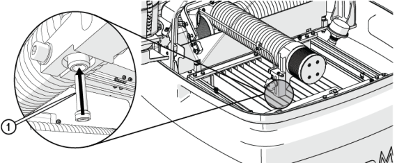 Hold the inlet body when loosening the hand knob. Do not let the inlet body fall and strike the cutting deck slats. Damage to the inlet body can occur, which can cause leaks.