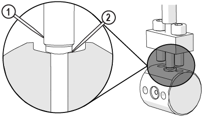 | 5. | Seat the high-pressure nipple [1] into the high-pressure fitting [2] and secure with the bar clamp and screws. |