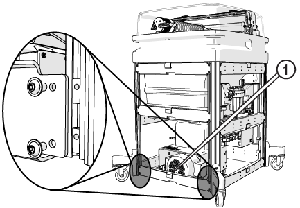 | 16. | Unlock the pump wheels and move the pump out from the machine. |